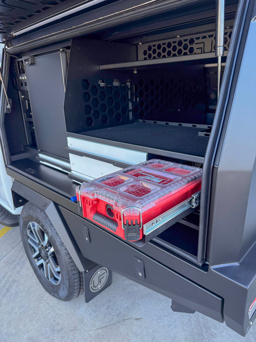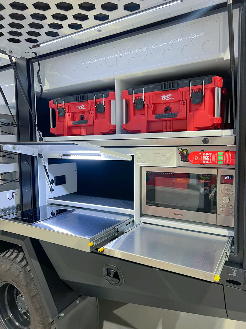We specialise in fully custom internal builds, where functionality exceeds your expectations. We manufacture for compact touring rigs, off grid solutions, work setups, additions to existing canopies or finding where one of our storage solutions best suits your setup.